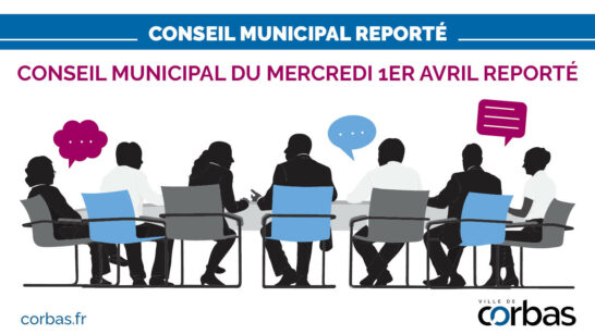 Le Conseil Municipal, initialement prévu le mercredi 1er avril, est reporté. Nous vous communiquerons prochainement la nouvelle date.